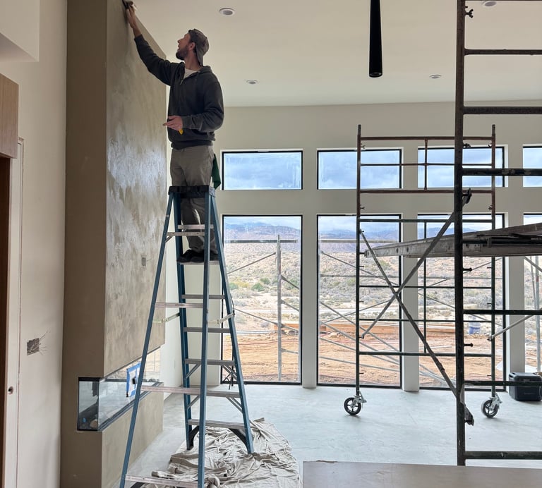 He is an exceptional plasterer. Precise, deeply skilled, dedicated, and genuinely artistic in the way he works. This is not someone who rushes or cuts corners. Kyle pays attention to surfaces, light, texture, and finish. He understands plaster as a material, not just a task, and it shows in every wall.